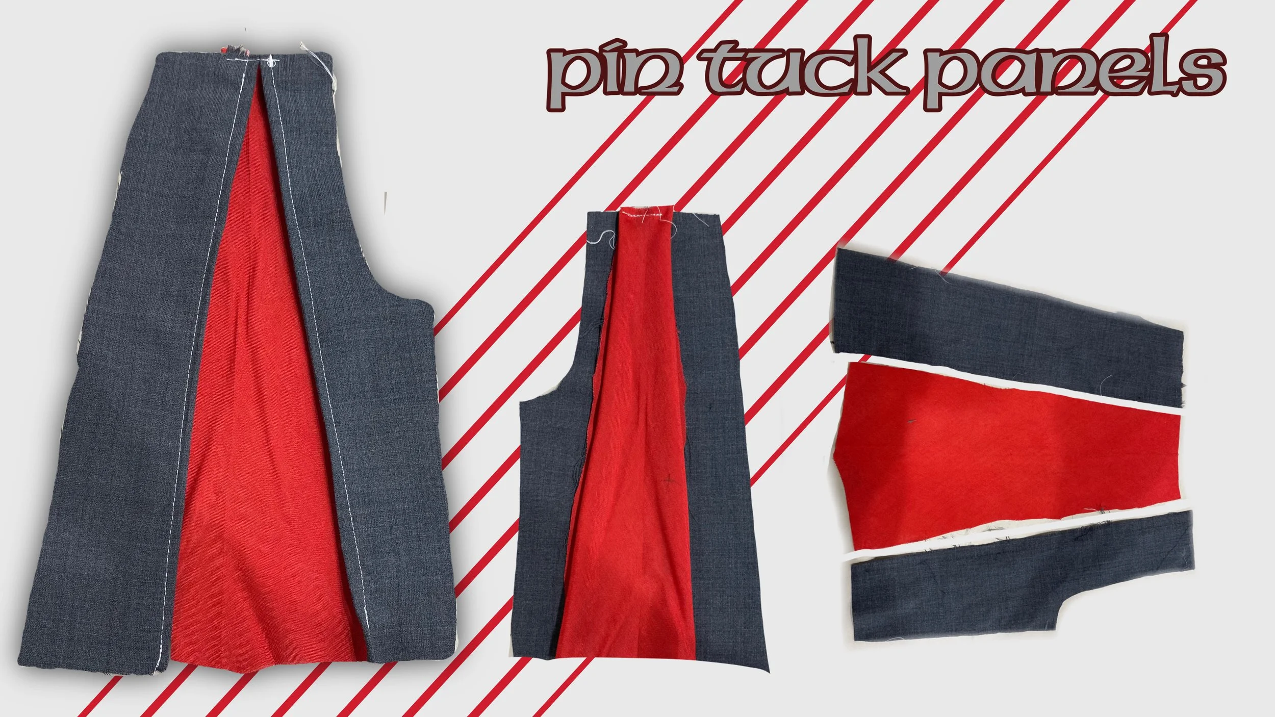 Pin tuck seams on panels- change top stitch to red
