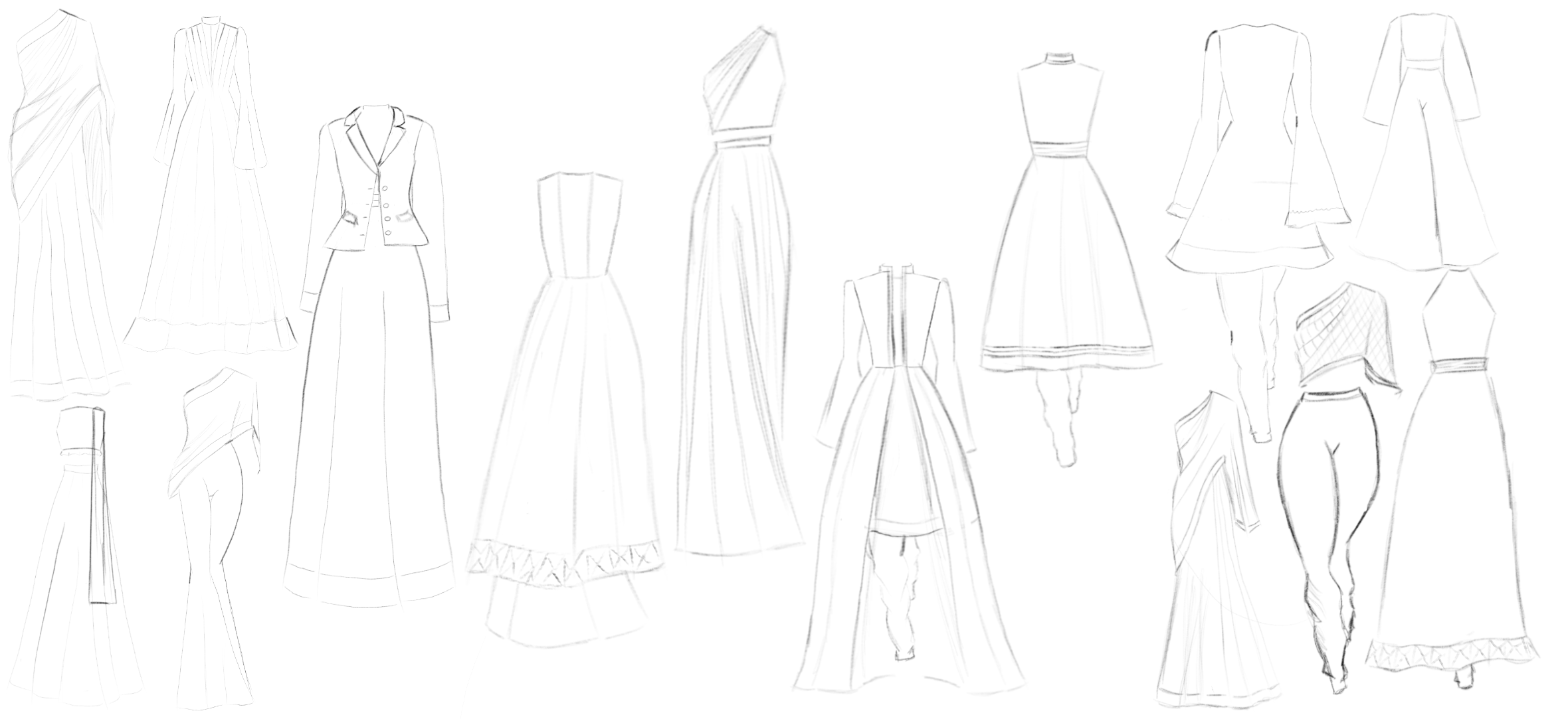 Pleats along the neckline draped 2 different ways. Crisper pleats vs a more fluid drape?